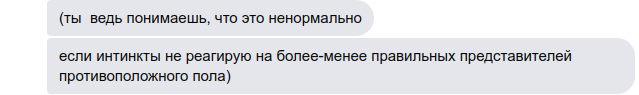 Так и продолжалось: мемы смешные, ситуация страшная. Вот, например, Дима заботливо расспрашивает меня, как дела в школе. У меня есть небольшой вопрос, да нет, не тот: как можно в 32 услышать от человека что-то в духе «в школке контроша по матёме» и не ужаснуться от самой мысли о подкатах? Это же натурально РЕБЁНОК.
